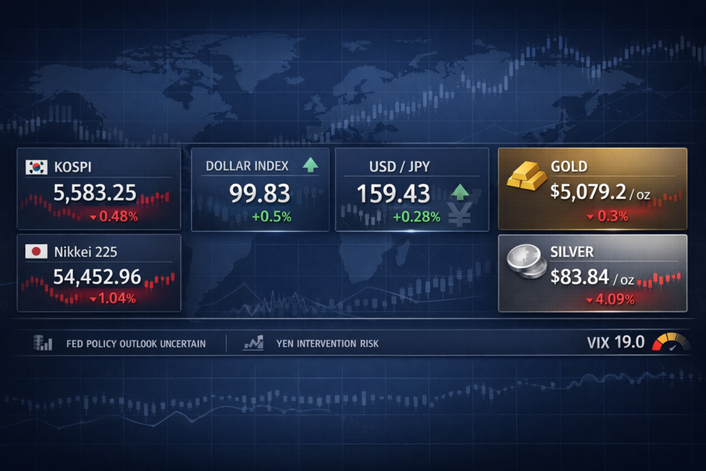 Cautious sentiment spreads across markets as the dollar strengthens and Asian equities decline. Global markets were mixed as investors remained cautious amid geopolitical tensions and shifting interest-rate expectations. Asian equities declined, with the Nikkei 225 down 1.04% and KOSPI down 0.48%, while the S&P 500 rose 0.21%. The Dollar Index gained 0.5% and USD/JPY climbed […]