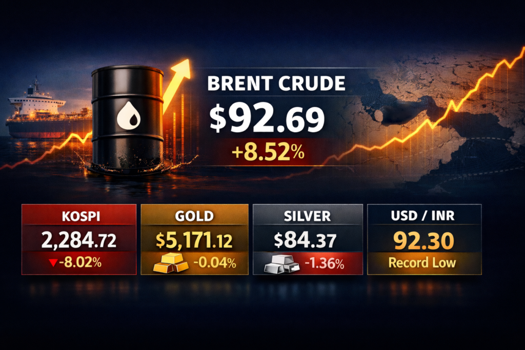 Energy-driven inflation fears weigh on equities as investors turn defensive. Global markets turned risk-off as oil prices surged on escalating Middle East tensions, raising fears of supply disruptions and higher inflation. Asian equities fell sharply, led by an 8% drop in the Kospi, while crude jumped over 8%. Safe-haven demand supported gold, and the Indian […]