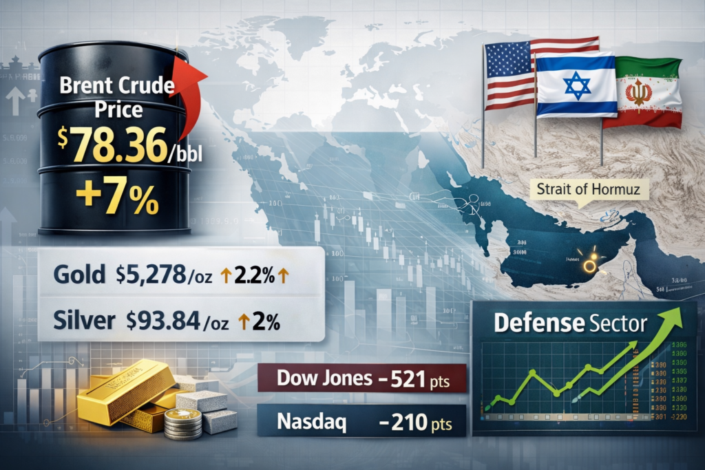 Stocks Slide Amid Rising Market Uncertainty as Gold, Silver and AI Shares Climb Global markets turned cautious as Middle East tensions pushed oil up nearly 5%, reviving inflation concerns. U.S. stocks fell, with the Dow down 1.61%, the S&P 500 −0.56%, and Nasdaq 0.26%, while the VIX rose to 23.57. Safe-haven demand lifted gold (+0.68%) […]