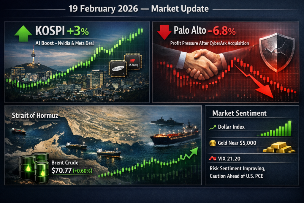 19 February 2026 — Today’s Market News — KOSPI +3%, Palo Alto −6.8%: AI Boost vs. Profit Pressure