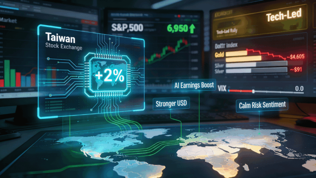 Markets edge higher on AI and bank earnings; gold and silver ease as the dollar strengthens. Global stocks rose as strong AI-related earnings and solid U.S. data improved the market mood. Asian shares moved close to record highs after Taiwan’s leading chipmaker reported a 20.5% revenue increase in Q4 FY25. The U.S. dollar held strong, […]