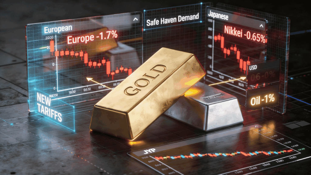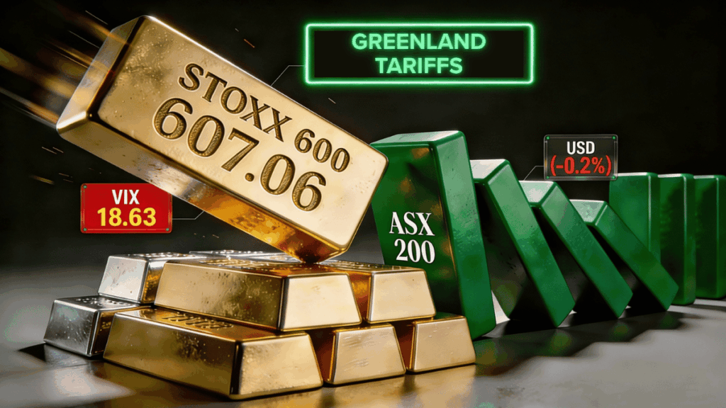 Risk mood turns cautious as VIX rises to 18.6 and investors lean into safe havens. Trading turned defensive. Stocks across Europe and parts of Asia fell as fresh U.S.–Europe tariff threats linked to Greenland raised worries about trade disruption. The U.S. dollar fell 0.2%, while gold jumped to a fresh record above $4,713.33/oz. Today’s Snapshot […]
